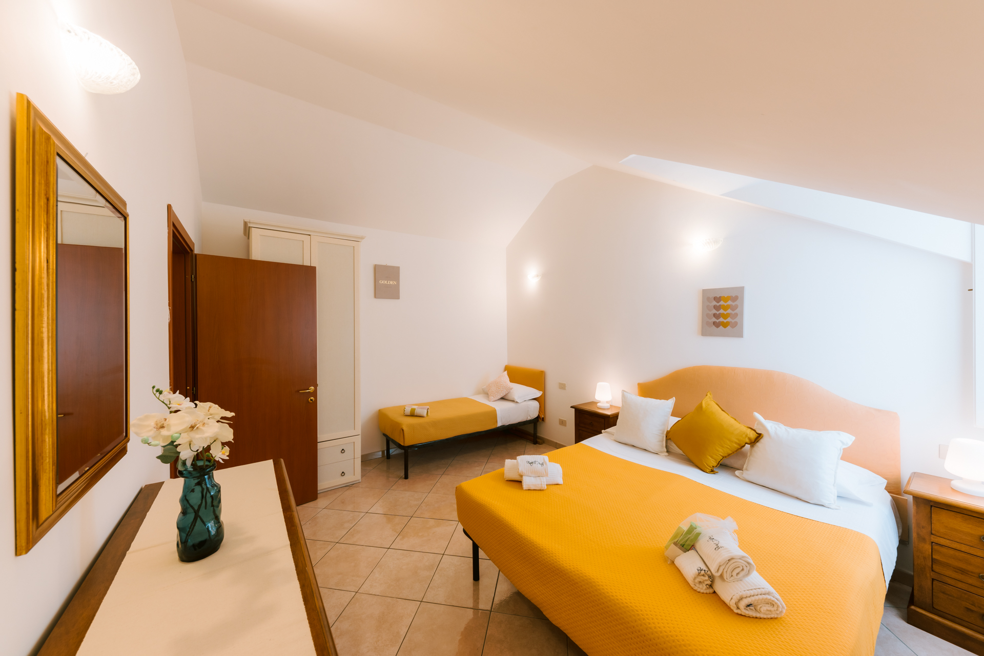 Una camera da letto matrimoniale 1 camera con 2 letti singoli.
